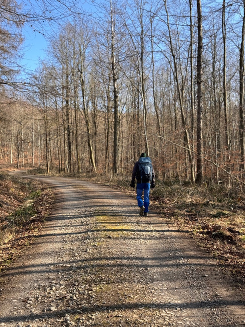 Von hier aus laufen wir bergab Richtung Waldwirtschaft Bärenhöhle. Es war ein so schöner warmer Tag und uns sind etliche Fahrradfahrer und Spaziergänger begegnet. Bei dieser Tour haben sich kleine Pfade und breite Wege in gutem Maße abgewechselt. Kleine Bachläufe und etliche Frühlingsboten haben den sonnigen Tag noch ein bisschen schöner gemacht!
