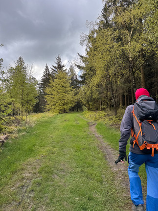 Als wir dann im Wald sind, laufen wir weiter bergauf. Das werden wir noch eine ganze Weile machen! Schließlich müssen wir ca. 420 Meter erklimmen.
